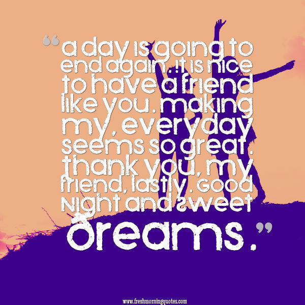 A day is going to end again. It is nice to have a friend like you. Making my, everyday seems so great. Thank you, my friend, lastly. Good Night and Sweet Dreams.
